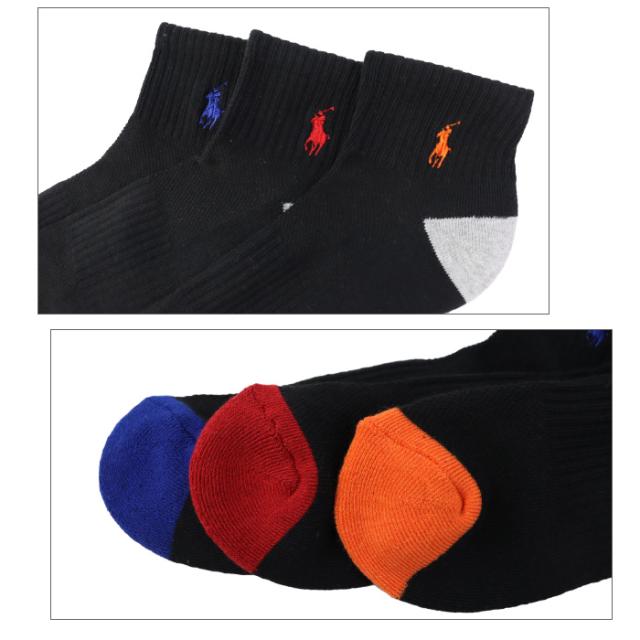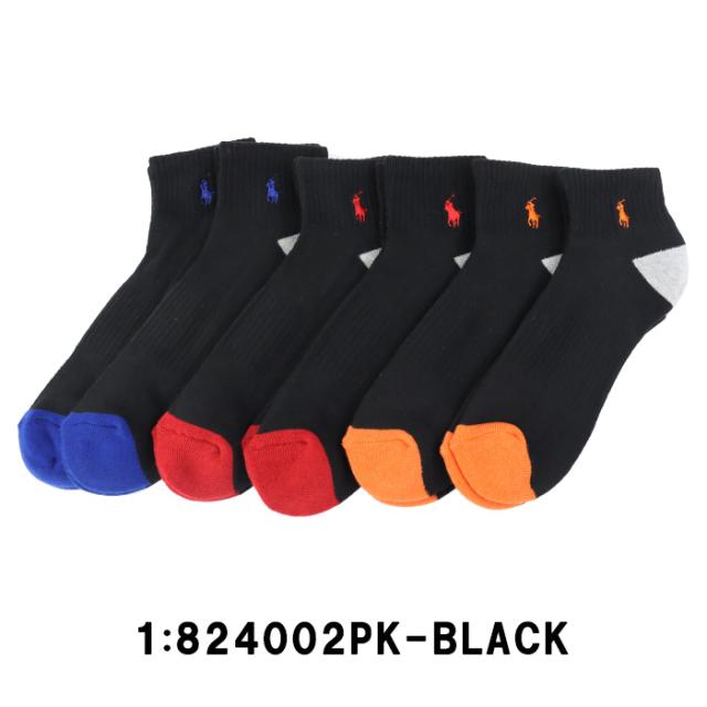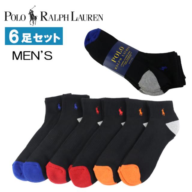 ポロ ラルフローレン 靴下 メンズ 6Pセット 824006PK4 CLASSIC SPORT ブラック×バイカラー リブ ショートソックス ポニー Polo Ralph Lauren ab-60462