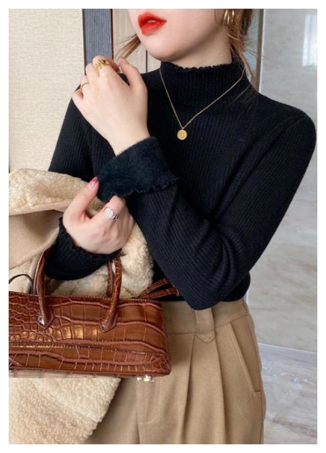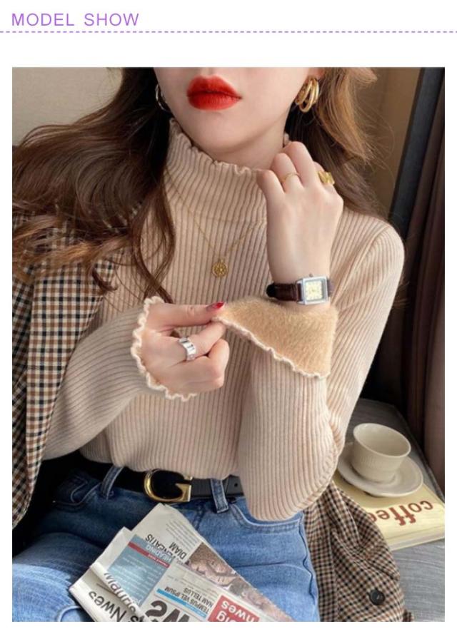 | 極暖裏起毛ニットです。 蓄熱性に優れた裏起毛で、風も通しにくく、保温性抜群。 すっきりしたリブニットで、着膨れすることなく、暖かさをキープしながらおしゃれを楽しめる。 首が長く見えるプチハイネック、窮屈感なく顔周りがすっきり。 | |