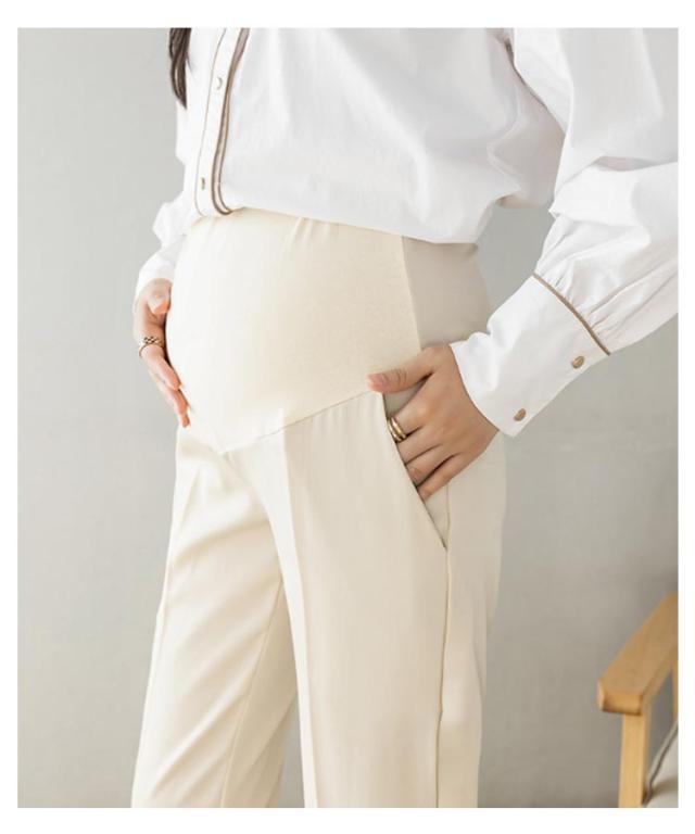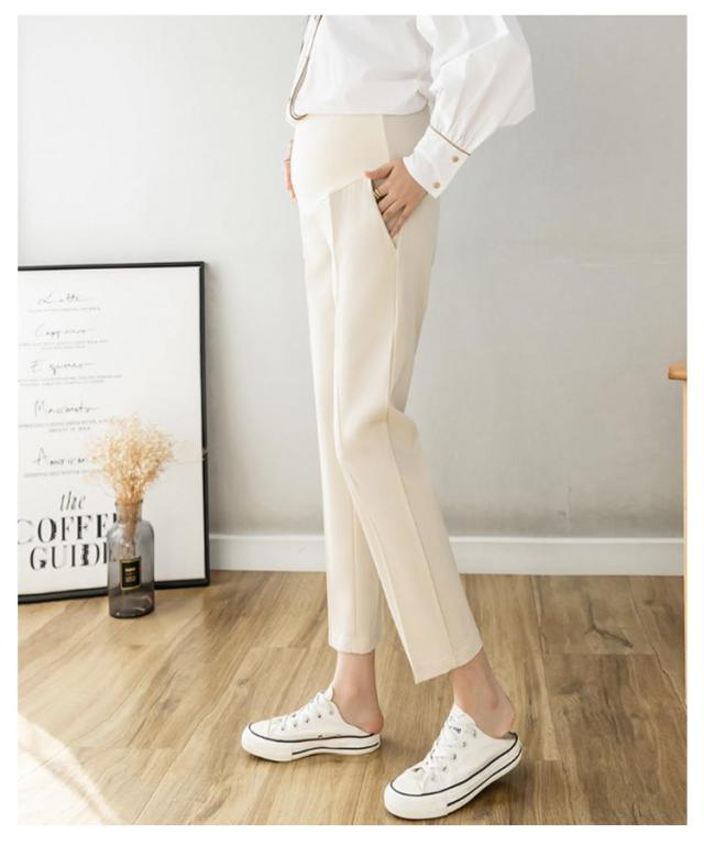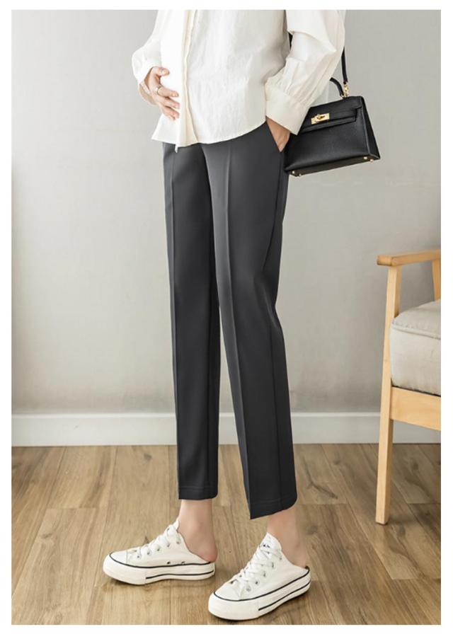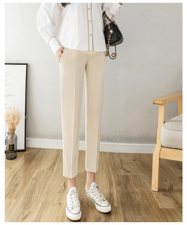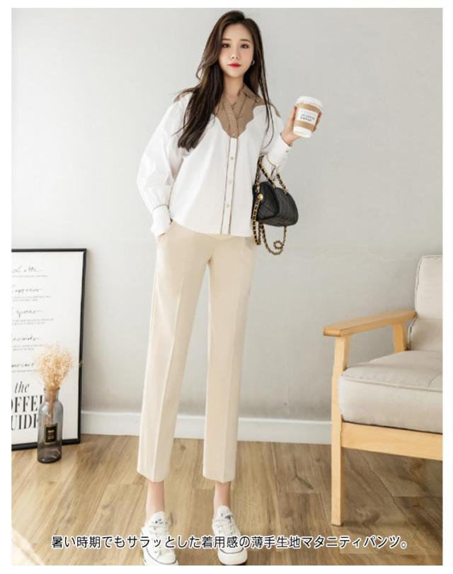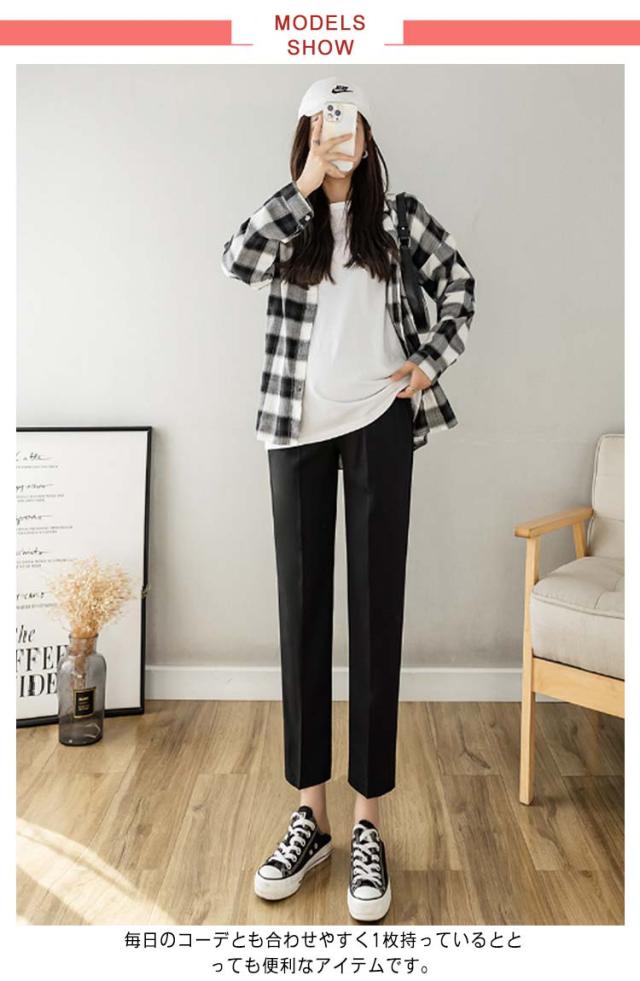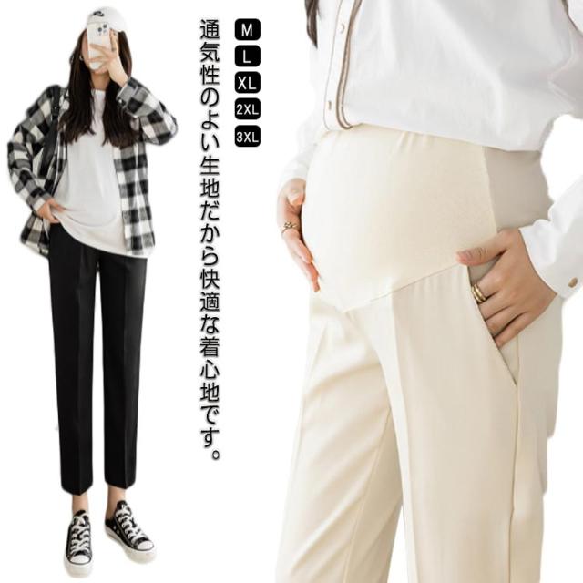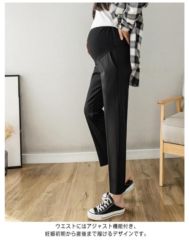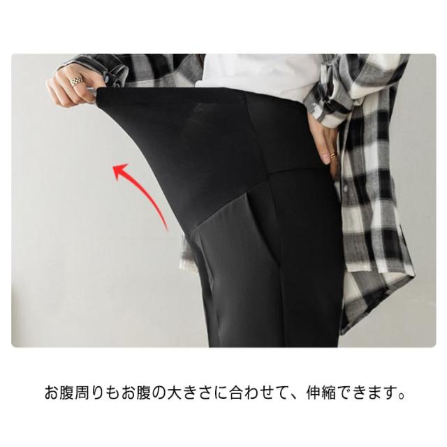 マタニティ パンツ チノパン オフィス スーツ ストレッチ 伸縮性 フォーマル アジャスター テーパードパンツ スラックス マタニティパンツ 妊娠服 ウエスト調整 足長 着痩せ ブラック 黒 白
