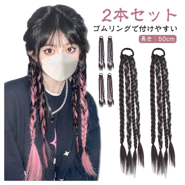 エクステ エクステ 女の子 イベント ポニーテール 便利 三つ編みエクステ ウィッグ ゴムタイプ 簡単 三つ編み ダンス 編み込み おしゃれ キッズ 大人 エクステンション コスプレ ヒップホップ ヘアアレンジ アレンジ つけ毛 毛束 ブラック ブラウン 2本セット