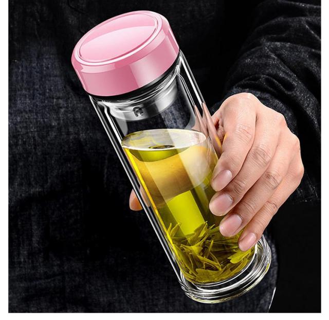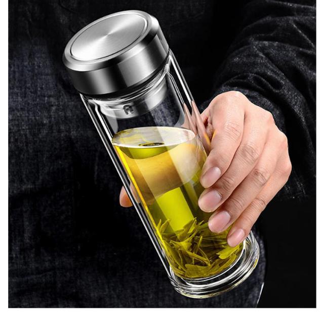 ティーボトル マイボトル ティープラス ダブルウォール 450ML プレゼント 耐熱ガラス 二重構造 350ML ガラスボトル 茶こし付き クリアボトル おしゃれ 水筒 タンブラー ビジネス ウォーターボトル マイ水筒
