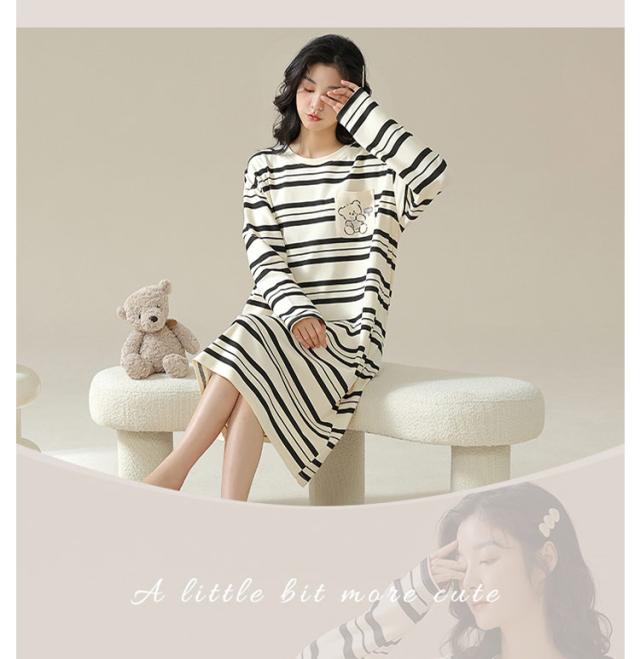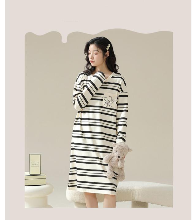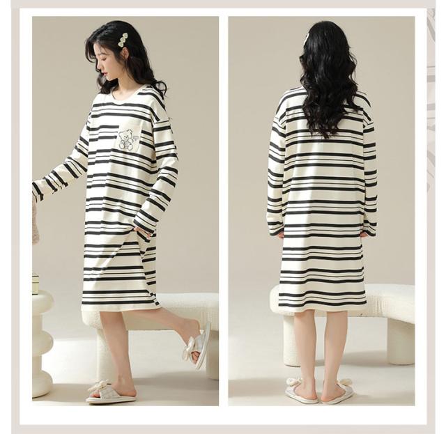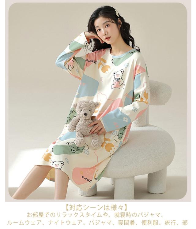 ワンピース 長袖 コットン パジャマ レディース ボーダー カップ付き ロング丈 部屋着 総柄 寝巻き マキシワンピース 部屋着 ゆったり ルームワンピース 秋 冬 春 おしゃれ かわいい ルームウェア