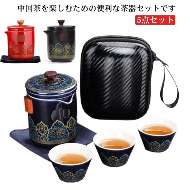 茶器セット 5点セット 煎茶道具 煎茶器セット ポット カップ 茶壷セット 中国茶器セット 湯呑み 急須 陶器 ギフト プレゼント 贈り物 便利グッズ 持ち運び便利 お家 事務所 旅行