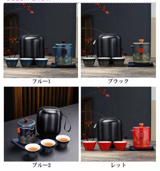 | 中国茶を楽しむための便利な茶器セットです。 茶壺(急須)、茶杯、茶筒、茶盤までセットになっているので、これひとつですぐに本格的なお茶を楽しむことができます。 専用の収納バッグに収められているので場所もとらず、持ち運びにも便利です。 くつろぎの時間やちょっとしたお持てなしの茶会にも。ひとつあると便利な茶器セットです。 ※茶壺は非常に熱くなります。火傷にはくれぐれもご注意ください。 セット内容:写真通り | |