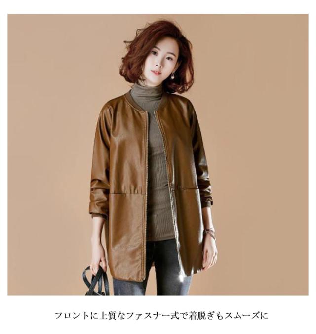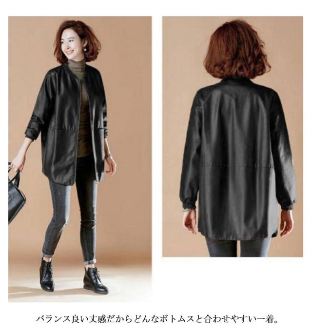 春コート ノーカラーコート フェイクレザー ロングコート レザーコート レディース アウター トレンチコート ノーカラー スタジャン PU 合皮 ジャケット コート ミドル丈 春秋用 30代 40代 50代 大きサイズ 6L 7L