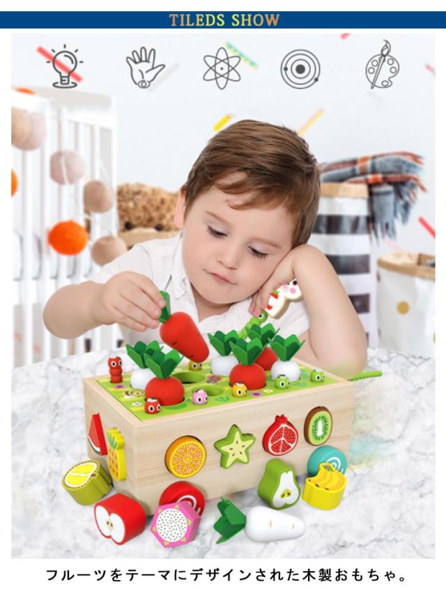 | フルーツをテーマにデザインされた木製おもちゃ。 やさしい天然木のぬくもりに触れながら、パーツ遊びで「指先を使う」能力を育み、楽しみながら果物の名称を覚えることができます。 見た目の色の綺麗さが子供の関心を引きよせ、豊富な積み木の色々な形が造形力・創造力を引き出します。 積み木は、純木つみきに加え、水性塗料などの材質を使用し安全! お誕生日プレゼントや出産祝いギフト、クリスマスプレゼントなどにもお勧めです。 | |