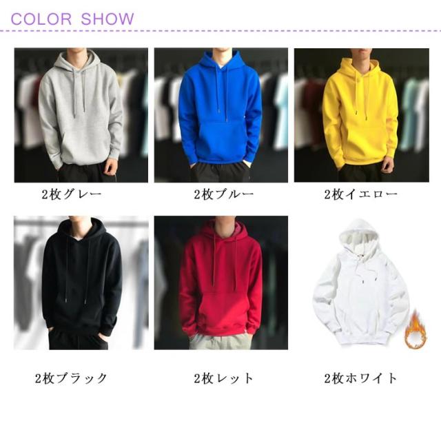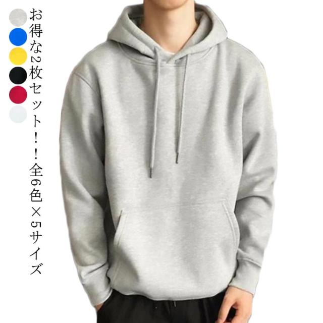 お得な2枚セット 全6色×5サイズ 裏起毛パーカー メンズ プルオーバーパーカー 無地パーカー フード付き パーカー プルオーバー 無地 シンプル メンズパーカー 裏起毛 カジュアル スポーツ ストリート トップス 送料無料