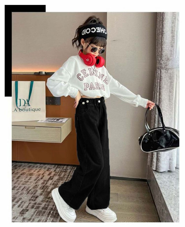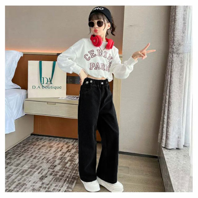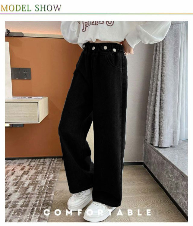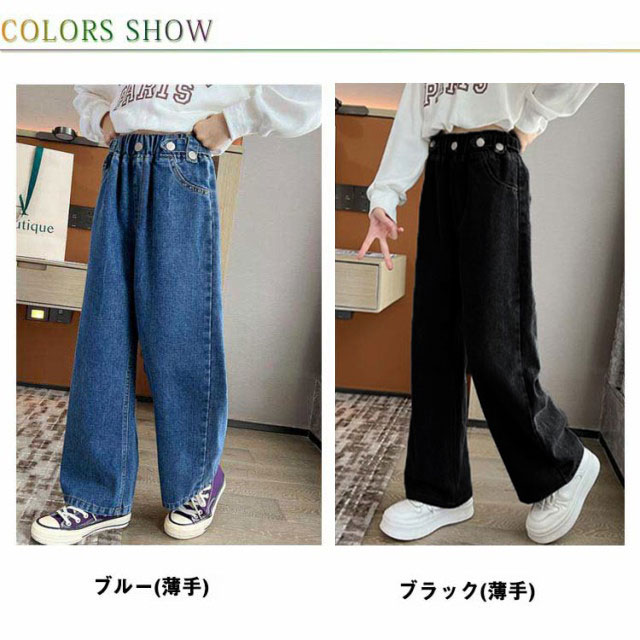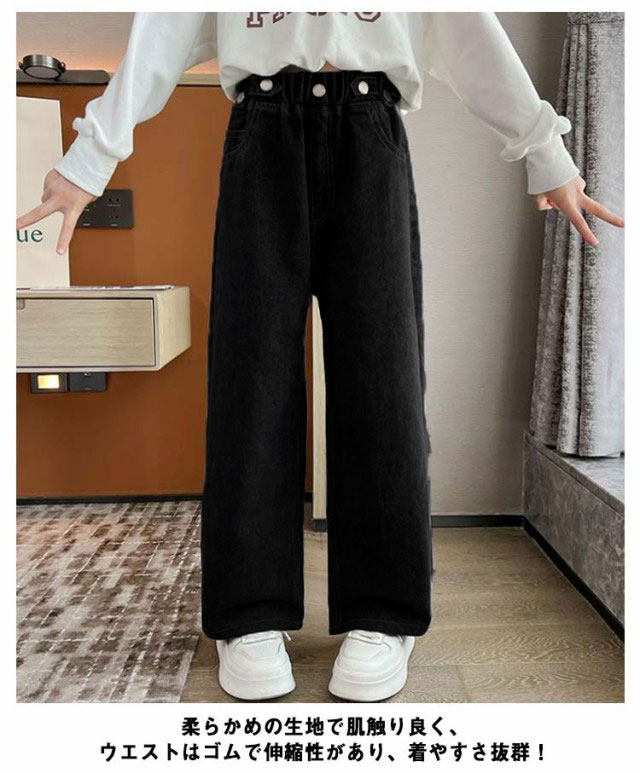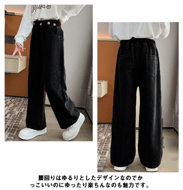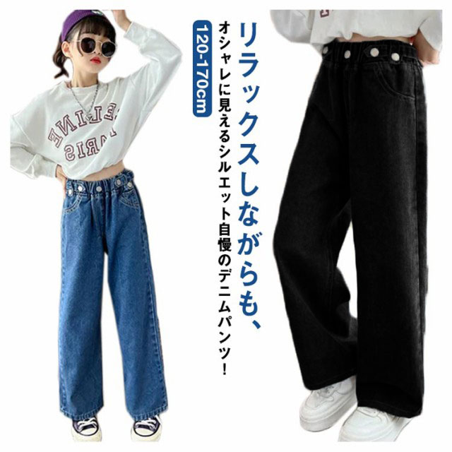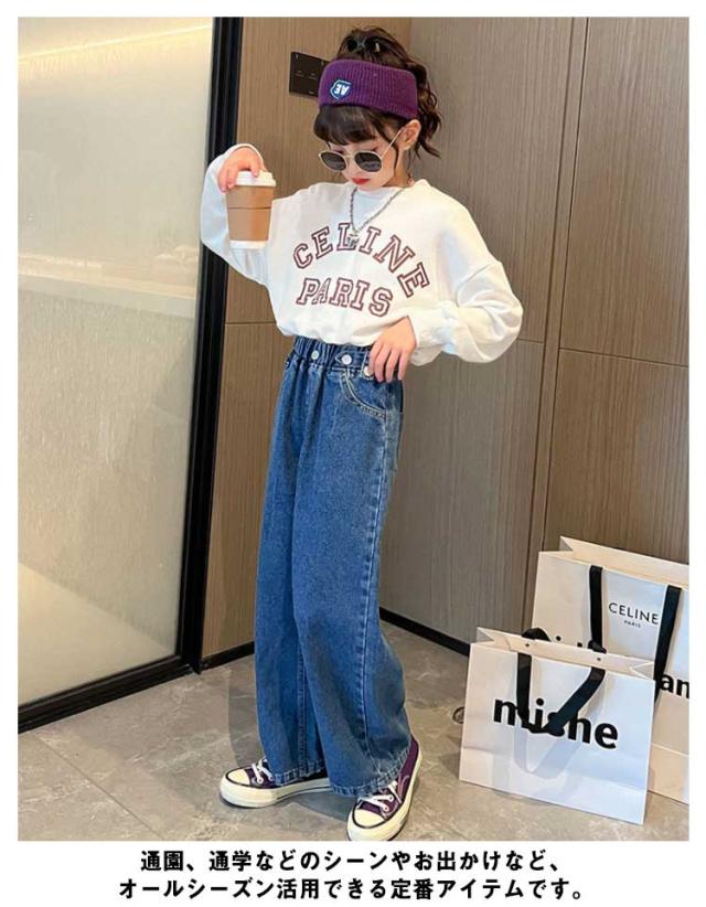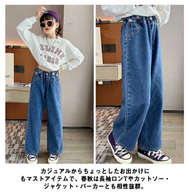 デニム パンツ キッズ ワイドパンツ ジーパン ジーンズ 春秋 ダンス衣装 子供服 ズボン 女の子 ロングパンツ おしゃれ 長ズボン 小学生 ジュニア 中学生 ヒップホップ 韓国ファッション