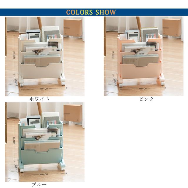 ファイルワゴン マガジンラック スリム 3段 キャスター 本棚 棚 移動 小物収納 文房具収納 書類整理 収納棚 ファイル立て 雑誌収納 本収納 新聞収納 新聞ラック 両面 デスク下収納 ファイルワゴン テレワーク 北欧 おしゃれ 白 ホワイト 省スペース