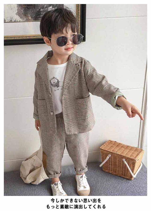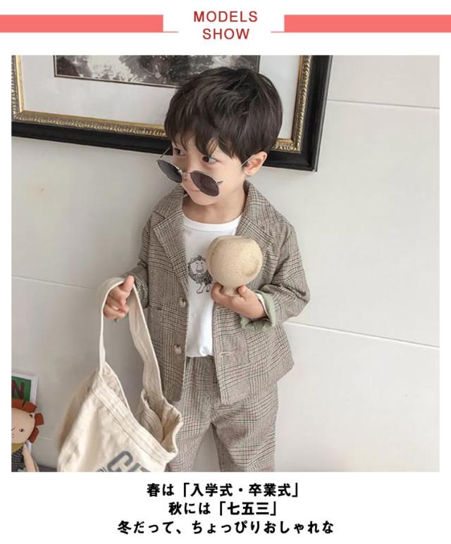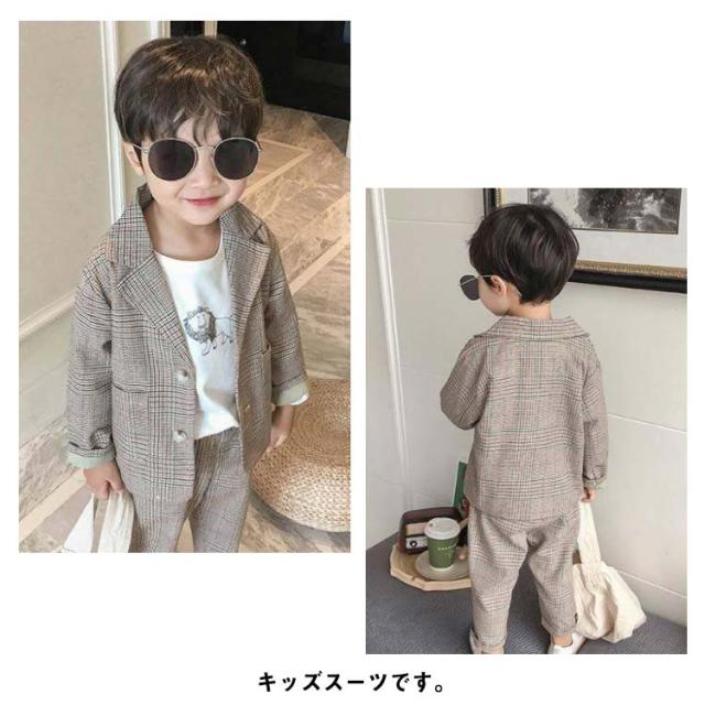 子供スーツ 男の子フォーマルスーツ 2点セット ボーイズ 子どもスーツ チェック柄 ベビー服 七五三 入園式 卒業式 入学式 卒業式 結婚式 発表会 お宮参り 誕生日 演奏会 お呼ばれ ブラウン ベージュ 90 100 110 120 130 140 送料無料