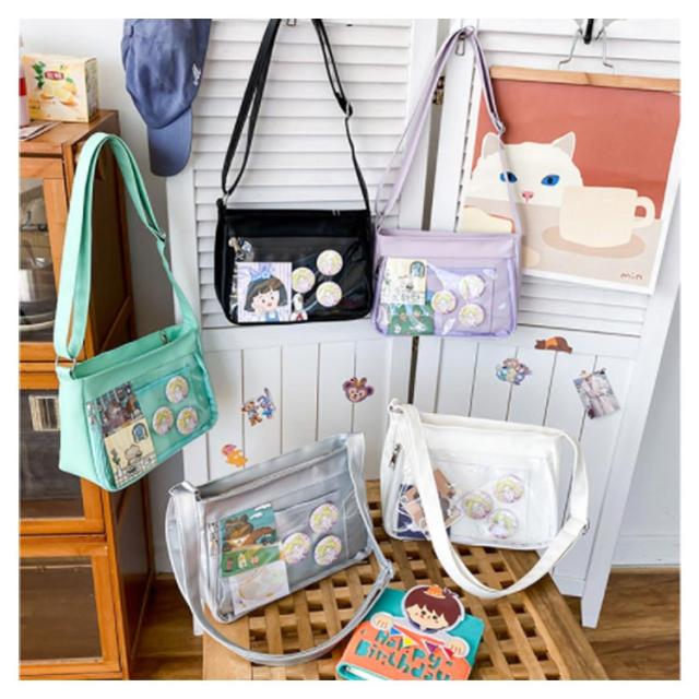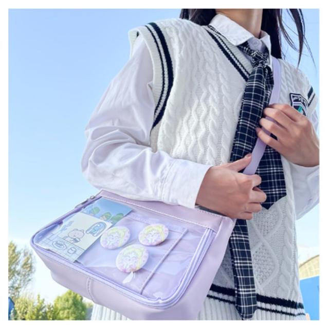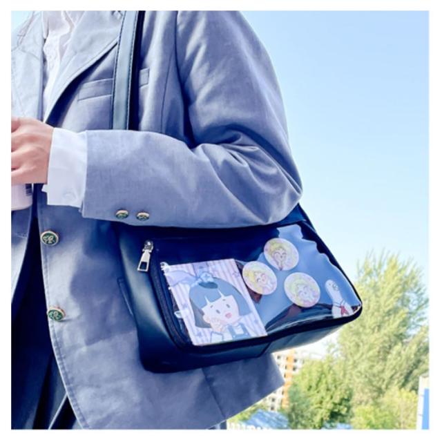 | 自分のコレクションを持ち歩けるバッグです。 マイコレクションをオシャレに持ち歩きましょ♪ バッグの透明ポケットで見せたいアイテムで自分の好みにアレンジできます。 好きな芸能人やアニメキャラの写真、缶バッジ、ぬいぐるみ、萌グッズなど入れて一目瞭然です。 | |