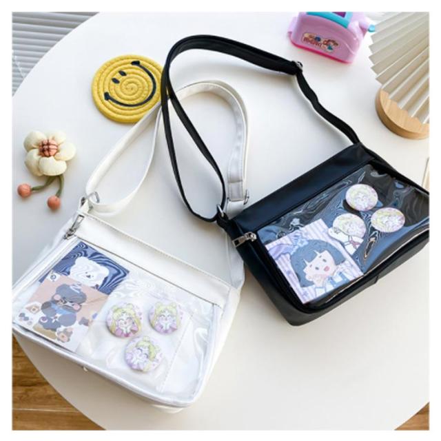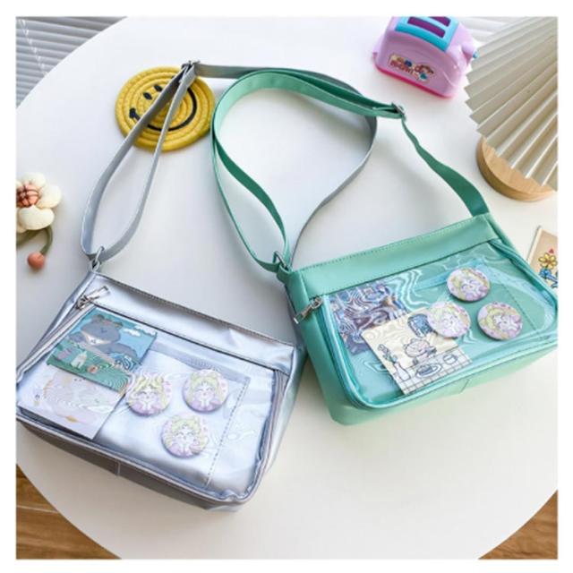 痛バッグ ショルダーバッグ デコバッグ 痛バッグ 痛バック デコバ 痛バ 透明 クリアバッグ 肩掛け 斜め掛け 子供 学生鞄 学生バッグ 軽量 透明ポケット ガールズ 学生かばん 可愛い 推し活 オタ活 イベント 推しカラー ぬいぐるみ 缶バッジ フェイクレザー 送料無料