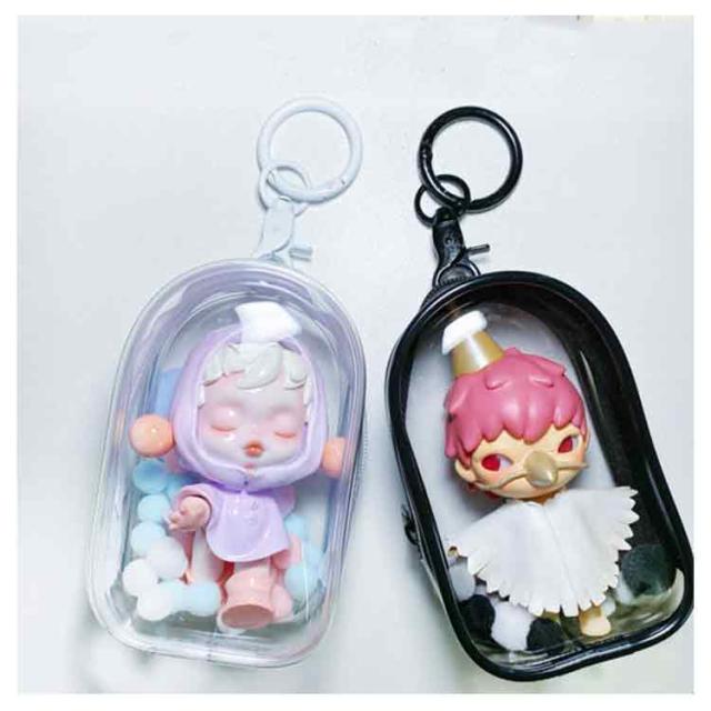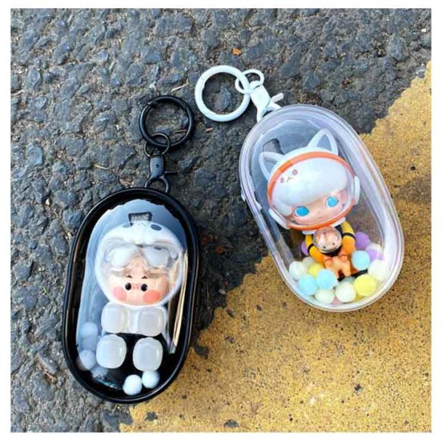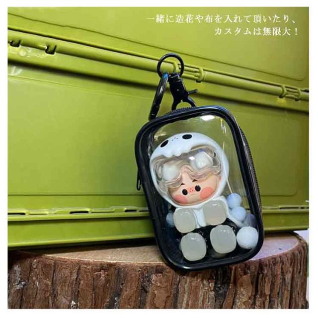 | マスコットやぬいぐるみを持ち運びできるミニクリアポーチ! 落としたり汚したりの不安なく、缶バッジやミニアイテム、小さなぬいぐるみを連れて歩けます。 一緒に造花や布を入れて頂いたり、カスタムは無限大! | |
