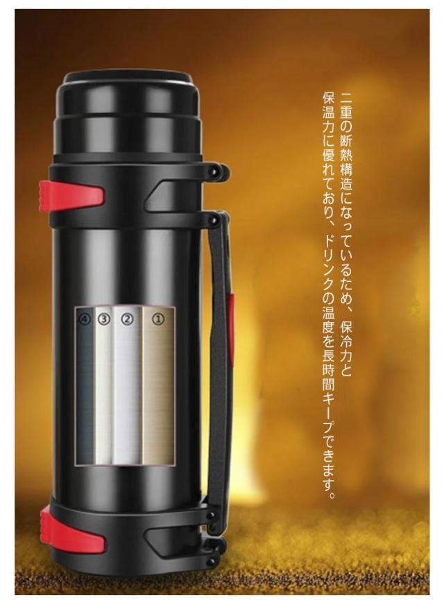 | 2600ml 3000ml 4200ml 大容量マグボトル 4点セット:水筒、ブラシ、肩紐、コップ 二重の断熱構造になっているため、保冷力と保温力に優れており、ドリンクの温度を長時間キープできます。 密閉性も高く、傾けたときに漏れにくいのもポイントです。 片手で開け閉めできるから、運動中に素早く水分補給したい時にもびったり。 頑丈なつくりなので、キャンプや登山など、アウトドアシーンでの使用にも向いています。 | |