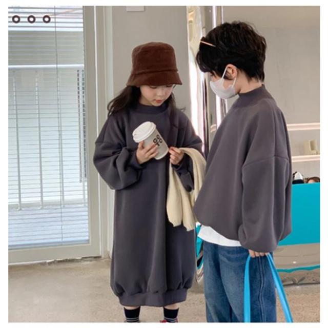 パーカーワンピース 長袖 パーカー ロング 男の子 女の子 Aライン 無地 キッズ スウェット トレーナー 子供服 子ども服 韓国子供服 子ども服 春 秋 冬 体型カバー ゆったり 90cm 100cm 110cm 120cm 130cm 140cm 150cm ジュニア おしゃれ かわいい 春服 秋服 通学 送料無料