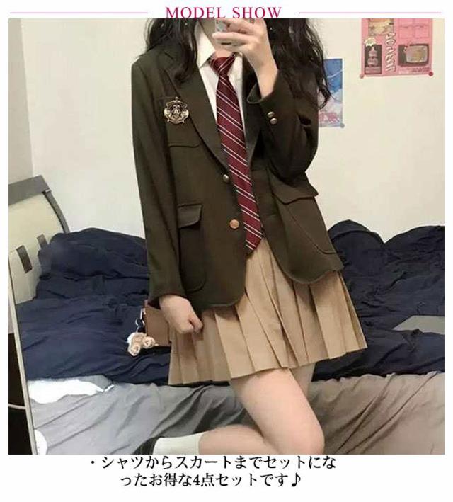 4点セット 女子高生 制服 リボン ブレザー スカート シャツ セット JK 学生 スクール コスプレ ファッション 高生 制服 高校制服 学生服 学生制服 JK制服 cos コス ジャケット 卒業式スーツ セット