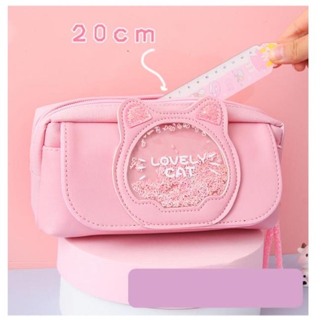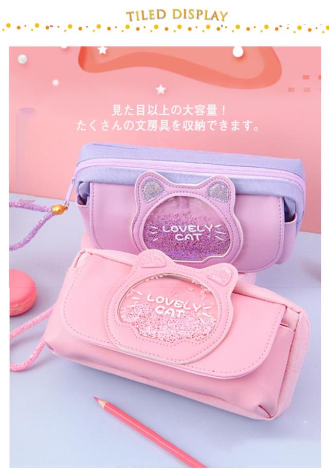 ペンケース 大容量 かわいい 筆箱 筆入れ ペン入れ キラキラ ネコ 小学生 女の子 入学祝い 誕生日 ギフト 中学生 化粧ポーチ 送料無料 小物 ポーチ 三つ収納ポケット