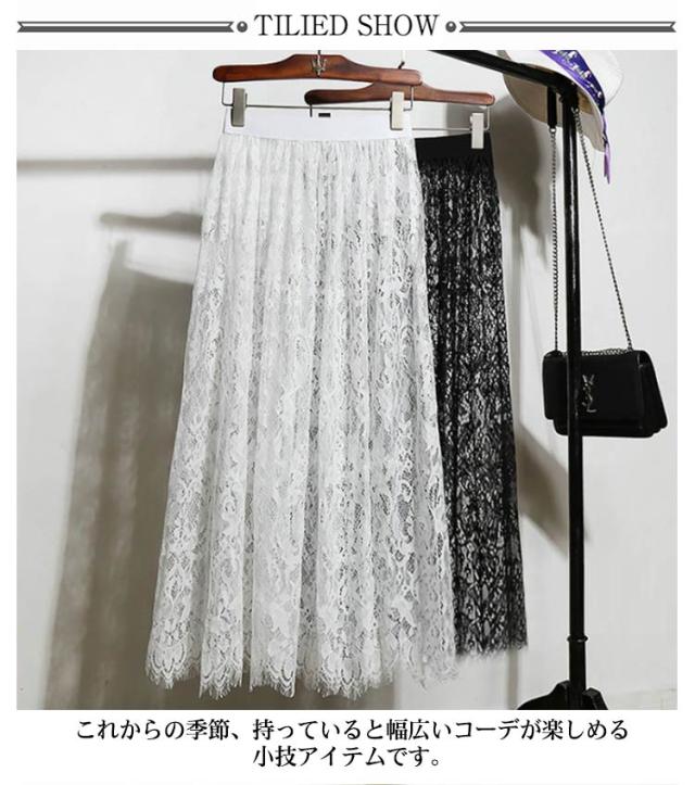 インナー スカート ロング レース ペチコート ペチスカート 75cm 丈増し スカート 総レース 重ね着 レイヤード ドレスインナー ゴムウエスト おしゃれ 体型カバー レディース ロングスカート マキシ丈 白 黒 【送料無料】