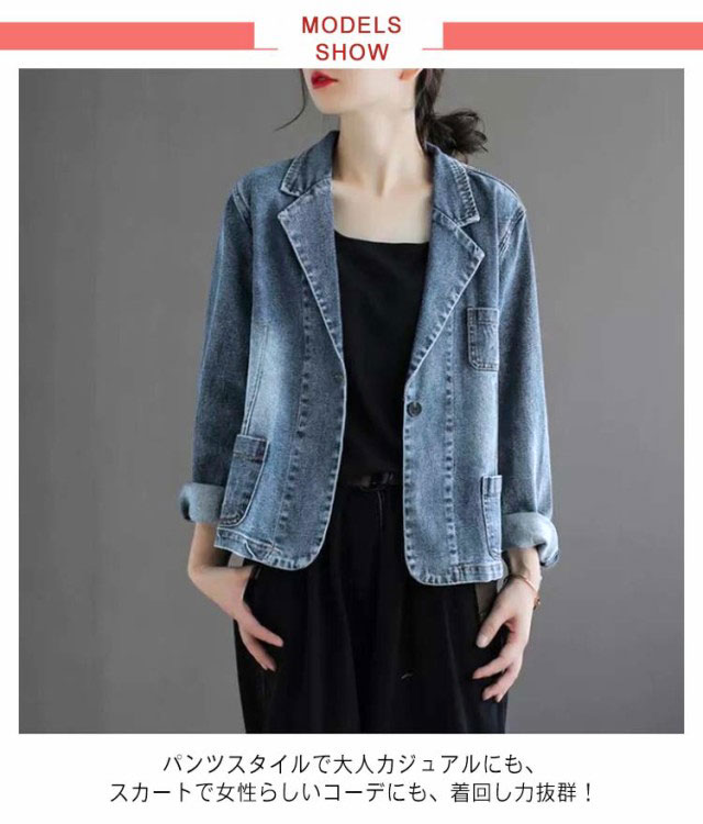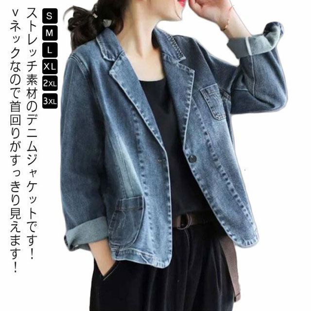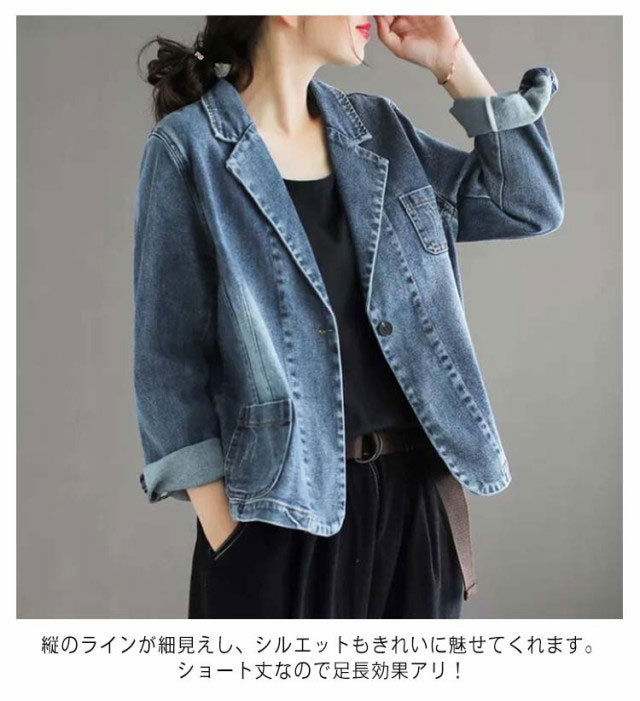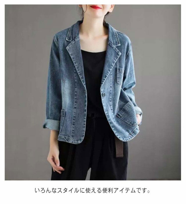 テーラード デニムジャケット レディース テーラードジャケット 春服 春物 テーラー襟 ジージャン 長袖 デニムジャケット 秋ジャケット 大きいサイズ カジュアル 通勤 40代 50代 送料無料