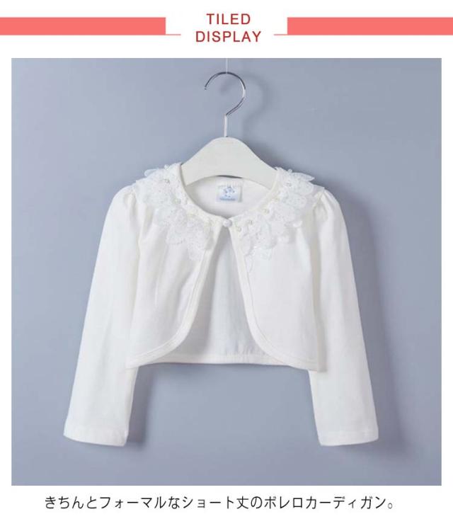 | ワンピース・ドレスとの相性抜群。 きちんとフォーマルなショート丈のボレロカーディガン。 季節の変わり目の羽織りアイテムとしてはもちろん、夏の冷房対策にも重宝する。 肌触り、着心地のよい素材を使って、柔らかくて肌を守ります。 普段着だけでなく、運動会、入学式、発表会、卒業式、子供会、七五三、通園、通学、旅行、お祝い、誕生日のプレゼント、お宮参り、クリスマス、お正月など各種イベント、アウトドアにもお勧めです。 | |