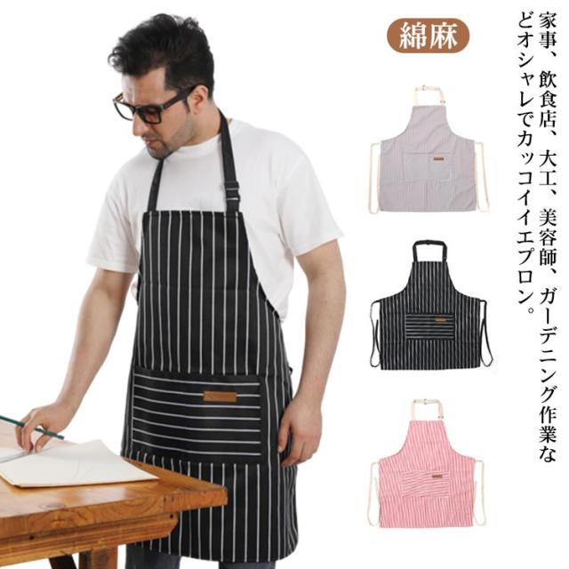 エプロン 前掛け H型 H型エプロン 綿麻 ワークエプロン 二つポケット メンズ レディース 男性用 女性用 ストライプ柄 かわいい おしゃれ オシャレ キッチン用品 雑貨 エプロン ワークエプロン 送料無料 柄 ストライプ ポケット
