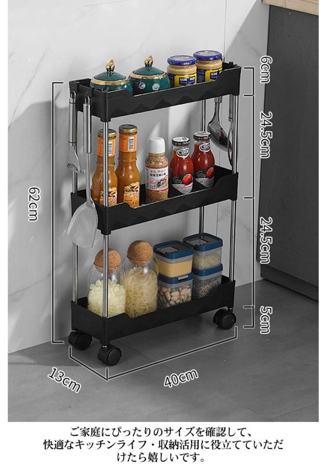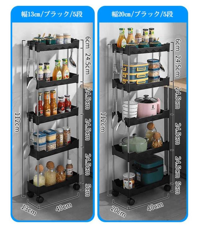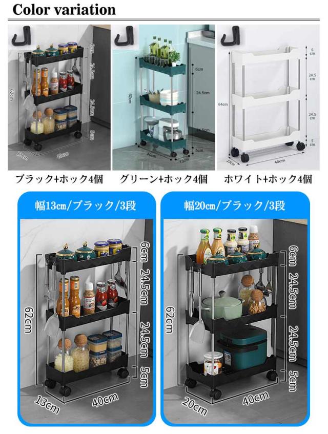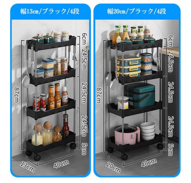 隙間収納トローリー キャスター付き 幅13cm 幅20cm ホック付き キッチン隙間収納 収納 すきま収納 洗面所 すき間 すきま すき間収納 薄型 ワゴンラック 隙間ラック スリム収納 収納ラック キッチンワゴン キャスター付き 収納ワゴン 収納家具 ワゴン