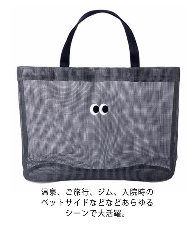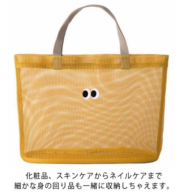 | メッシュで通気性がバツグンなメッシュトートバッグです。 化粧品、スキンケアからネイルケアまで細かな身の回り品も一緒に収納しちゃえます。 とても軽いので畳んで収納すれば旅行や出張などにも手軽に持って行けます。 温泉、ご旅行、ジム、入院時のベットサイドなどなどあらゆるシーンで大活躍。 | |