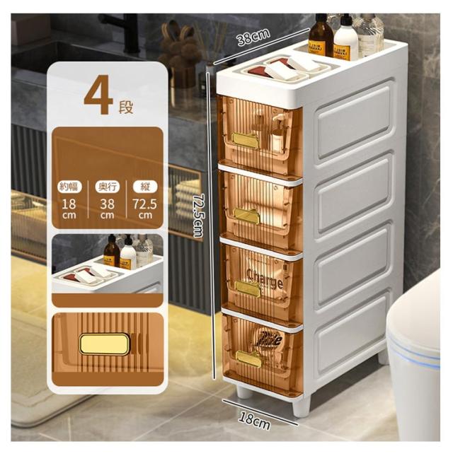 すき間収納 すき間 洗面所 幅18cm 4段 スリムストッカー 引出し キッチンラック 隙間収納 キッチンストッカー 隙間ラック 浴室 トイレ 棚 ラック すきま収納 タオル サニタリー 収納 台所 北欧 キッチンチェスト 食品