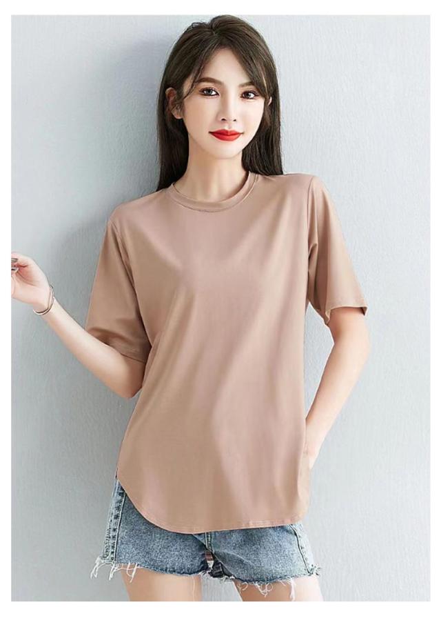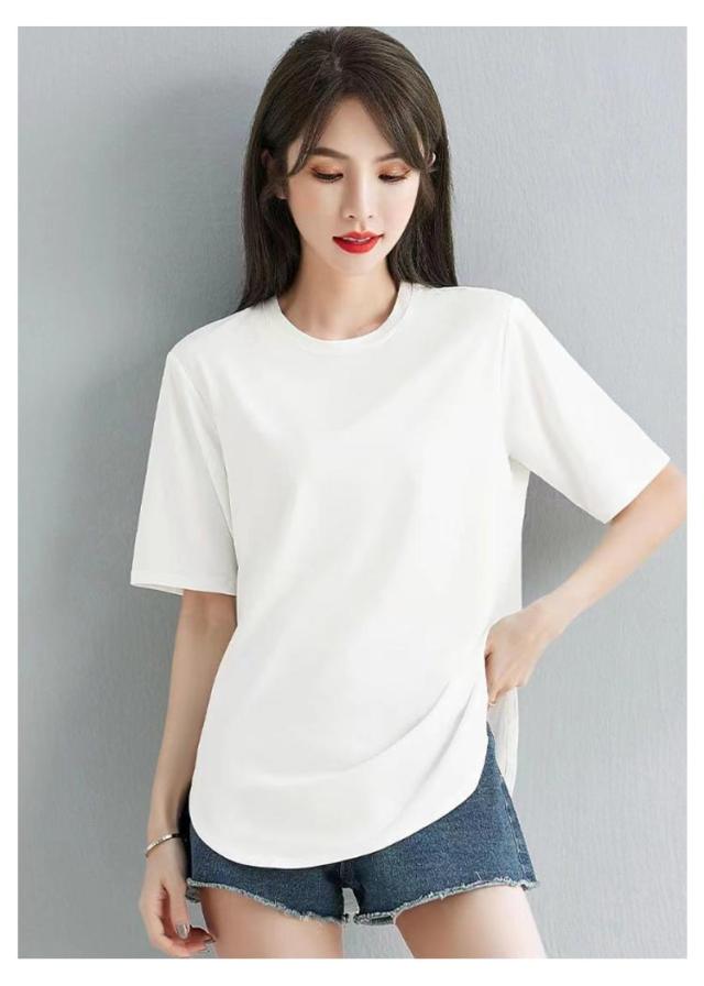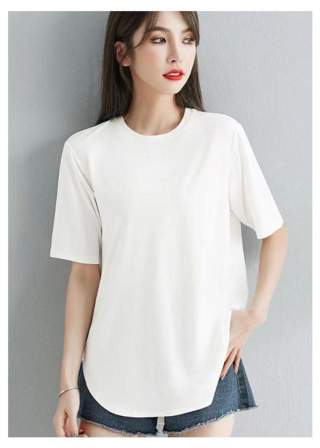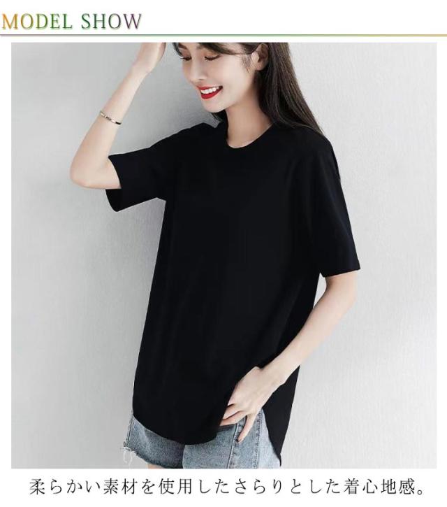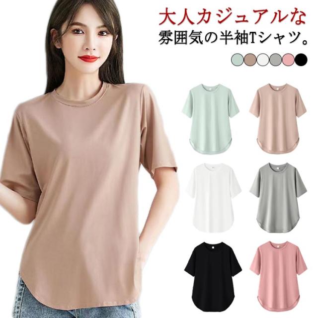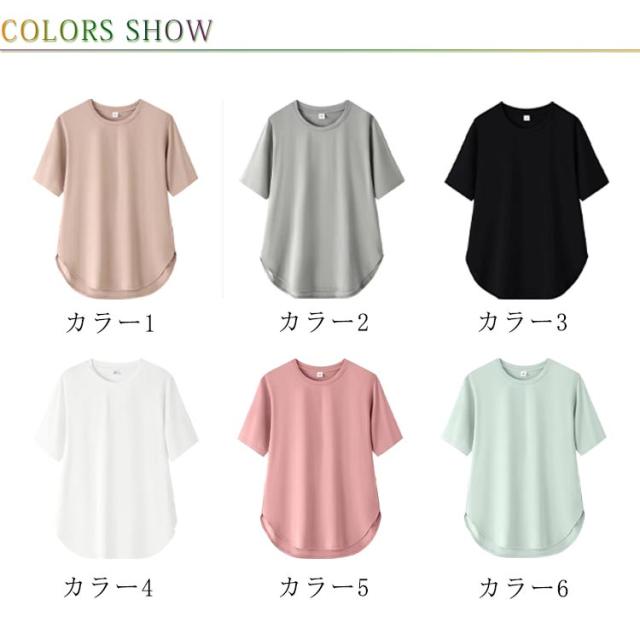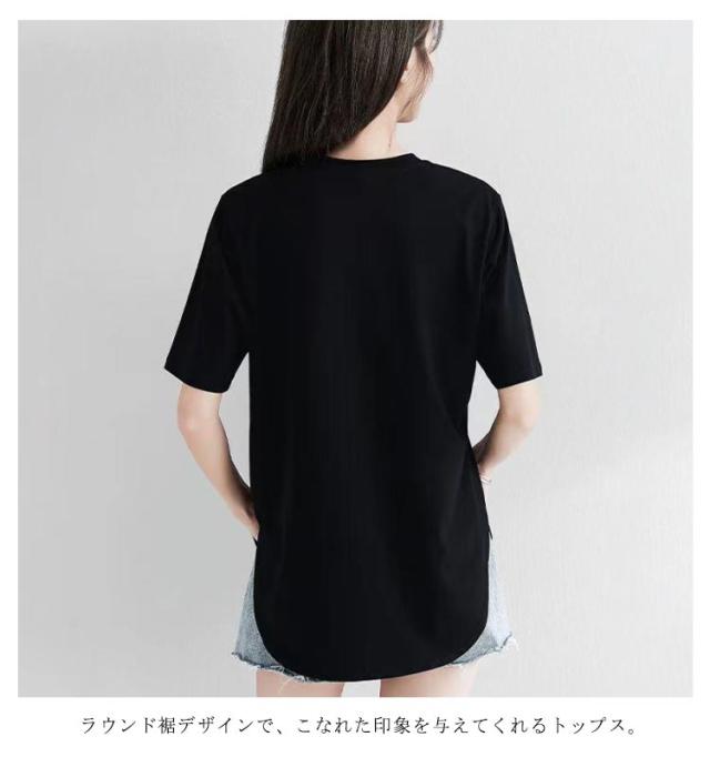 ラウンド裾 Tシャツ レディース 半袖Tシャツ カットソー tシャツ トップス ゆったり ロング丈 ロングT 大きいサイズ ティーシャツ シンプル 体型カバー 着回し M L XL 2XL