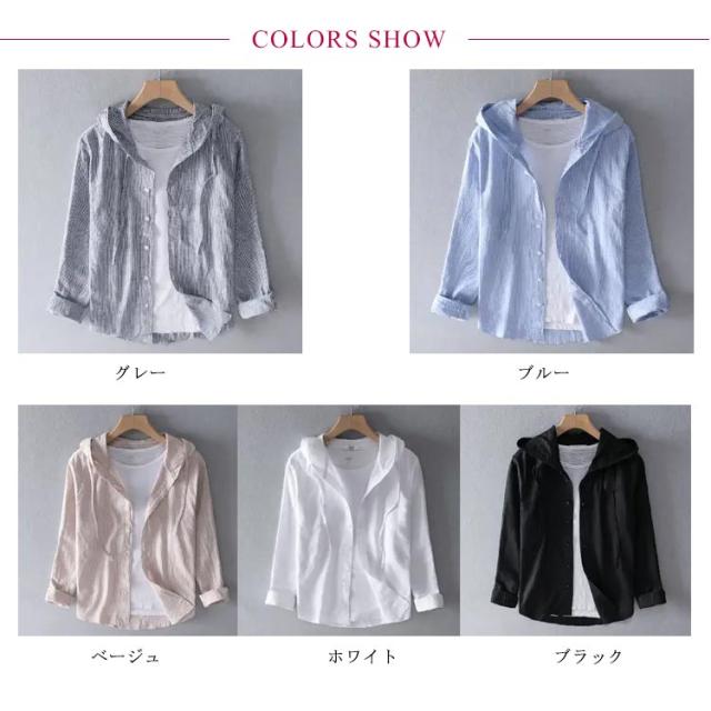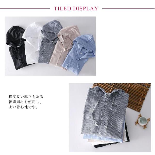 シャツ メンズ フード付き シャツジャケット 春夏 リネンシャツ メンズシャツ 長袖 トップス ストライプ柄 無地 カジュアルシャツ ゆったり 薄手 UVカット 前開き 麻 リネン 綿麻 夏物 涼しい カーディガン ボタンパーカー 春服 夏物 秋 アウター おしゃれ 送料無料