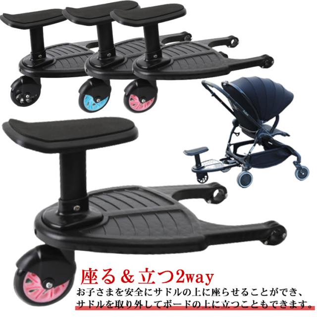ベビーカーステップ ベビーカー 補助ペダル ステップ ステップボード バギー 二人乗り ボード 接続 サドル付き 座れる 立つ ベビーカーステップボード オプションボード ベビーカーボード 取り付け簡単 お出かけ お散歩 説明書付き