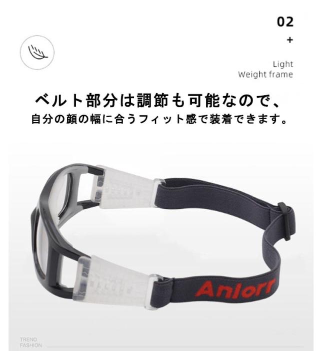 | サッカーやバスケットボールなどをプレーする際に眼鏡の代わりに着用するスポーツゴーグル。 フレームは軽量で柔軟性のあるPC素材を使用しています。超軽量でクリアな視界を実現し、弾力性・安定性・耐衝撃性にも優れています。 夏や日差しが強いときに高性能レンズは紫外線、眩しさや有害なライトをカット。 顔と接触する部分にクッション材を配することで、スポーツ時の激しい動きにも対応。 ベルト部分は調節も可能なので、自分の顔の幅に合うフィット感で装着できます。 汗をかいてもズレにくく、衝撃にも強いため、サッカー・野球・バスケットボールなど幅広いボールスポーツに対応可能です。 | |