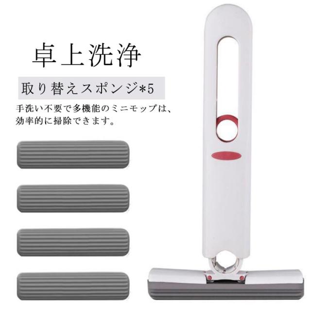 脱水用絞り器付き!ミニ モップ 卓上洗浄スポンジ 折りたたみ ミニモップ ぞうきん 台所 キッチン テーブル お掃除グッズ 便座掃除 ペットの尿 台所 手洗い不要 多機能 コンパクト ガラス掃除 バスルーム 隙間 掃除 吸水性 水拭きモップ