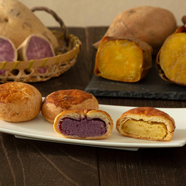 全国的にも知名度の高い種子島の特産品である安納芋の安納こがねを使用し、紫芋は希少品種の種子島ゴールドを使用しています。それぞれを白あんに絡め「安納芋あん」「紫芋あん」を作り、パイ生地に包んで焼き上げたお菓子です。パイのサクッとした食感とお芋あんの美味しさが楽しめるお芋スイーツは、おやつに、デザートに、おもてなしスイーツやご褒美スイーツにもおすすめです。