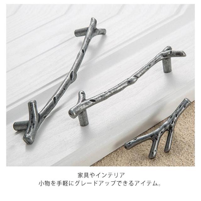 | 枝をモチーフにした引き出しハンドル。 枝を模した形状とアンティーク感たっぷりな質感が、使い込むほどに味わいを深めます。 アンティークやナチュラルのほか、北欧などのシンプルでウッディなインテリアにもおすすめ。 家具やインテリア小物を手軽にグレードアップできるアイテム。 | |