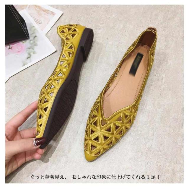 パンプス ローヒール カットワーク 透かし模様 パンプス 痛くない ポインテッドトゥ ぺたんこ 走れる フラットパンプス フラットシューズ バレエシューズ 夏 合成皮革 刺繍 歩きやすい 柔らか 軽量 サンダル 脱げない カジュアル おしゃれ フェミニン オフィス 22.5-25.0cm