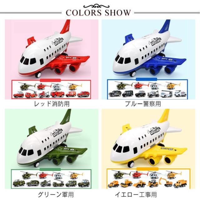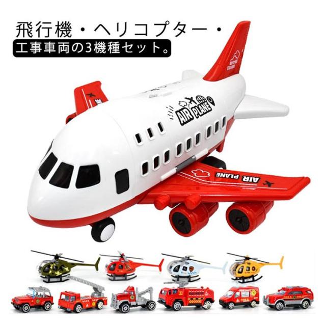 | ・飛行機・ヘリコプター・工事車両の3機種セット。 ・飛行機に興味のあるお子さんに、プレゼントしてみてはいかがでしょうか。 | |