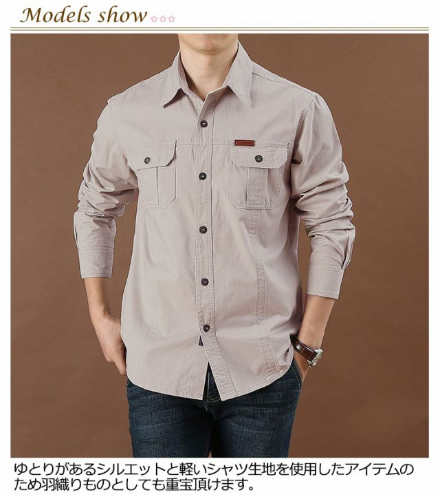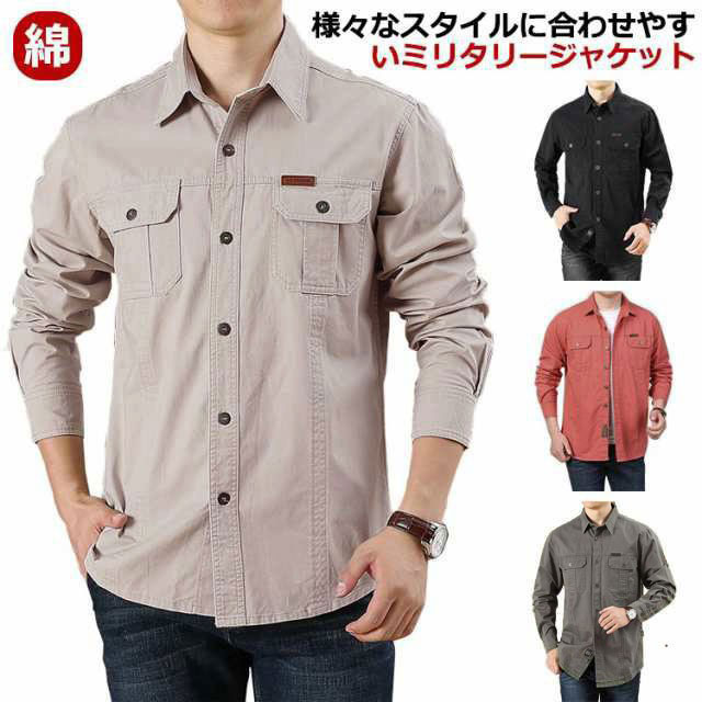 ミリタリーシャツ ポケットあり メンズ ワークシャツ デニムシャツ カーゴシャツ ゆったり コットン 綿 長袖シャツ アメカジ ウエスタンシャツ カジュアルシャツ ライトアウター ブルゾン カジュアル メンズファッション 大きいサイズ 【送無】