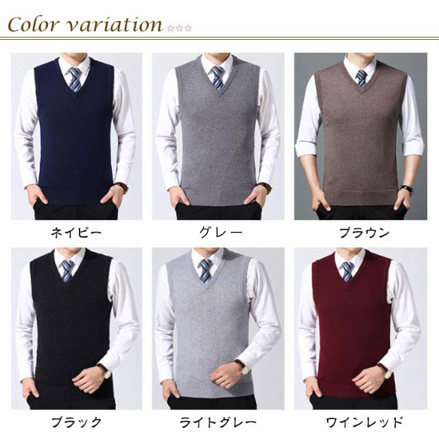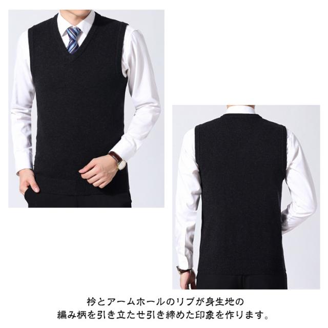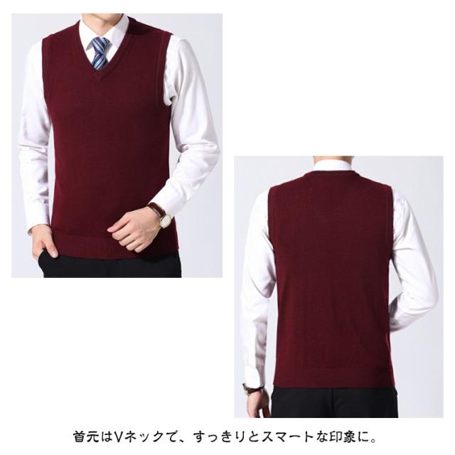 ニットベスト Vネック メンズ 春 秋冬 プルオーバー ニット ベスト ジレ 無地 ビジネス フォーマル ノースリーブ セーター ウール混 洗える 毛玉抑制加工 防寒 父 男性 敬老の日 プレゼント 実用的 ゴルフ 通勤 通学 ニット トップス 【送料無料】