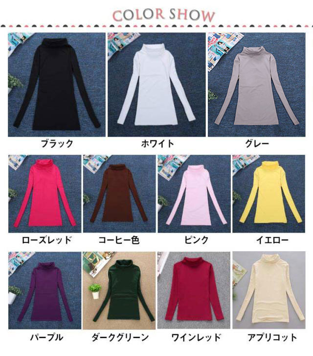 カットソー 長袖 レディース ハイネック きれいめ Tシャツ 春 夏 秋 冬 ボトルネック インナートップス インナーシャツ インナートップス レイヤード 下着 肌着 アンダーウェア 重ね着 細身 大人 女性 婦人 送料無料