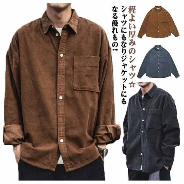 シャツ メンズ 長袖 春 夏 秋 冬 カジュアルシャツ ジャケット オーバーサイズ ボタンダウン ゆったり シャツジャケット コーデュロイシャツ 秋服 冬服 秋物 無地 ストレッチ ビジネス 部屋着 在宅勤務 オシャレ 20代 30代 40代 50代 60代 送料無料 M L XL 2XL