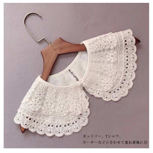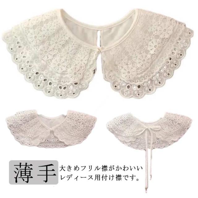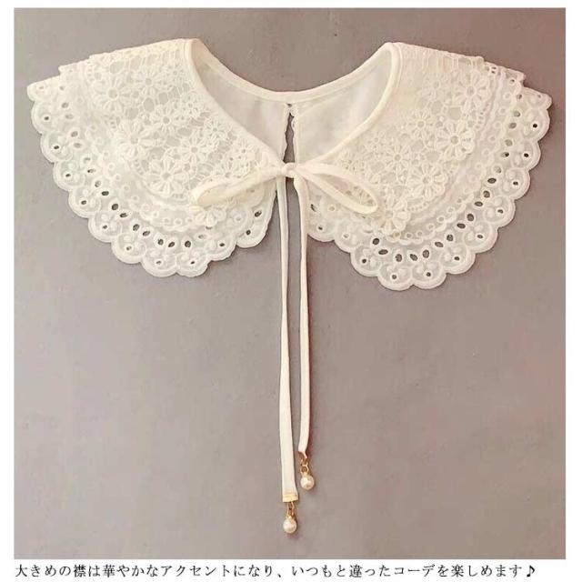 付け襟 つけ襟 レディース レース フリル襟 丸襟 角襟 総レース パール ボン紐 リボン結び 刺繍 クルーネック レイヤード カジュアル 重ね着 お洒落 可愛い 薄手 オールシーズン お出かけ 通勤 通学 清楚 きれいめ 大人 アクセサリー