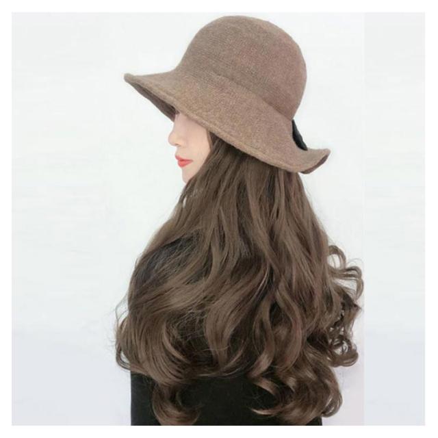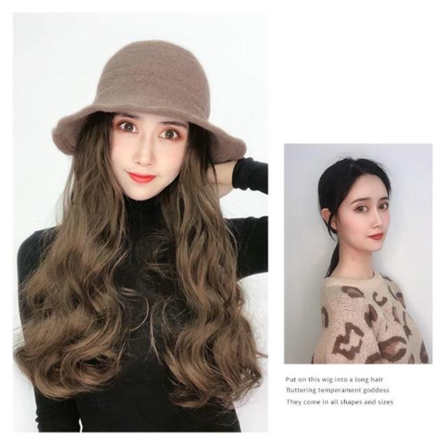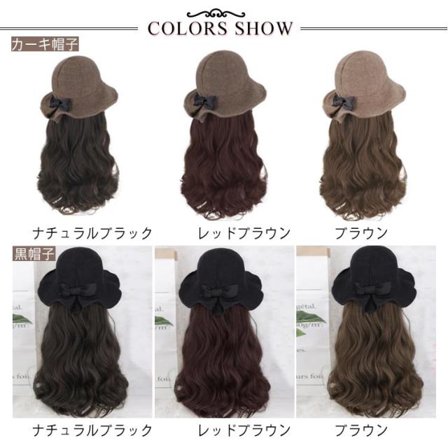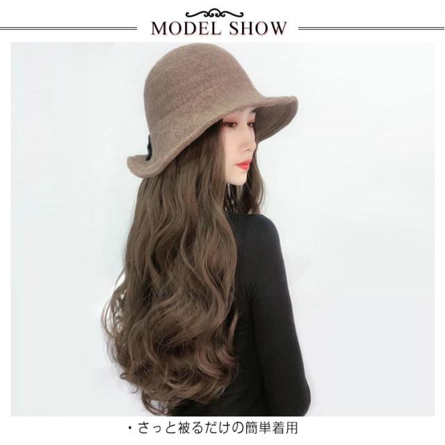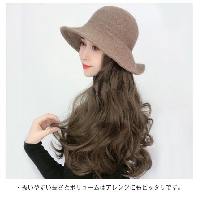 髪付き帽子 ウィッグ ロング カール 帽子一体型 ウィッグ付きキャップ 小顔効果 自然 耐熱 ハット つば広