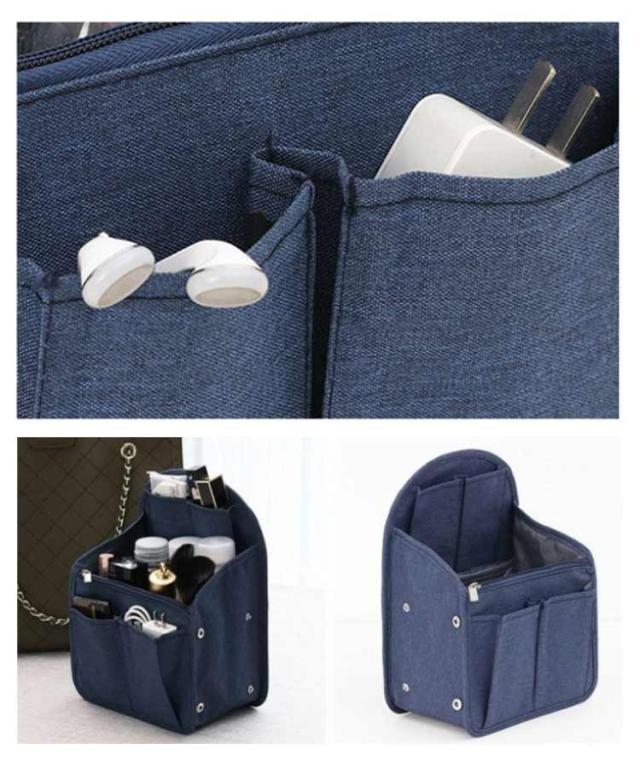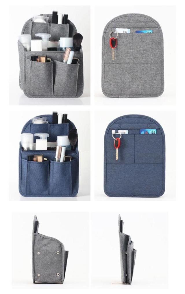 | 便利なリュック用バッグインバッグ。 お財布や手帳や化粧品ポーチやペンやスマホなど収納してリュック内部をスッキリ整頓ができます。 裏面のリングは鍵などをつけておくのに便利! 旅行で宿泊先の洗面所やクローゼットに吊るしておくと便利です。 | |