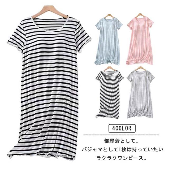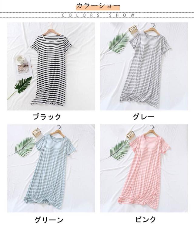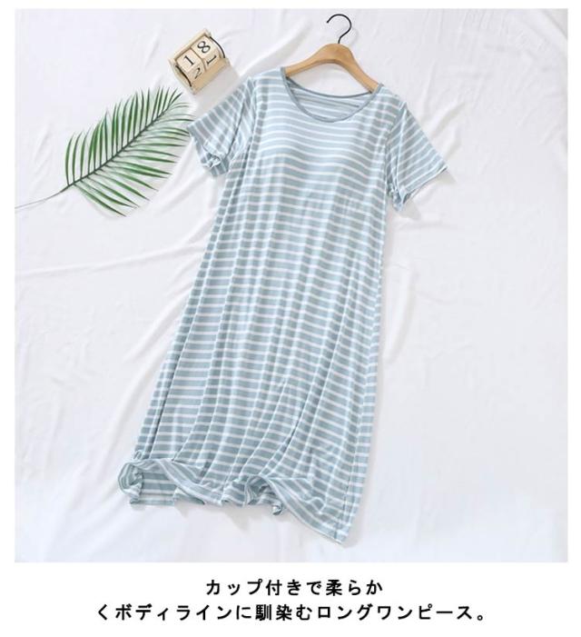 ワンピース レディース 春秋 体型カバー パジャマ ボーダー柄 大きいサイズ 長袖 カップ付き マタニティ ルームウェア 部屋着 寝間着 お洒落 ナイトウエア 送料無料