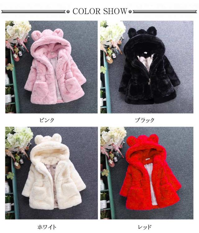 ファーコート キッズ服 あったか もこもこ ふわふわ 女の子 耳付き フード付き 可愛い 秋冬 ロングコート 無地 子供服 大きいサイズ 前ファスナー 防風 送料無料