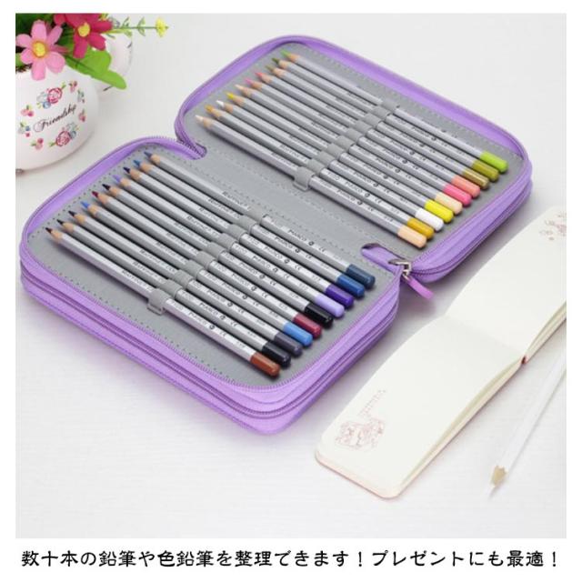 鉛筆 ケース 色鉛筆ケース 色鉛筆 収納 ケース 72本 36本 48本 収納可能 筆箱 大容量 黒 シンプル 丈夫 便利 持ち運び 美大 美術 お絵描き 子供 大人 画材 スケッチ 写生 ぬり絵 塗り絵 えんぴつ 色えんぴつ ファスナー ゴム 色鉛筆なし