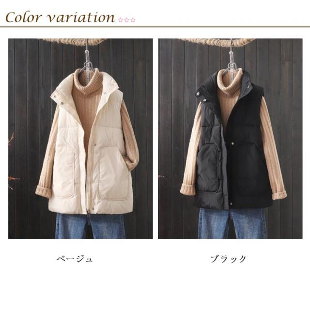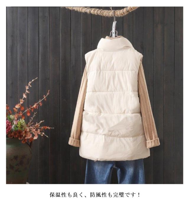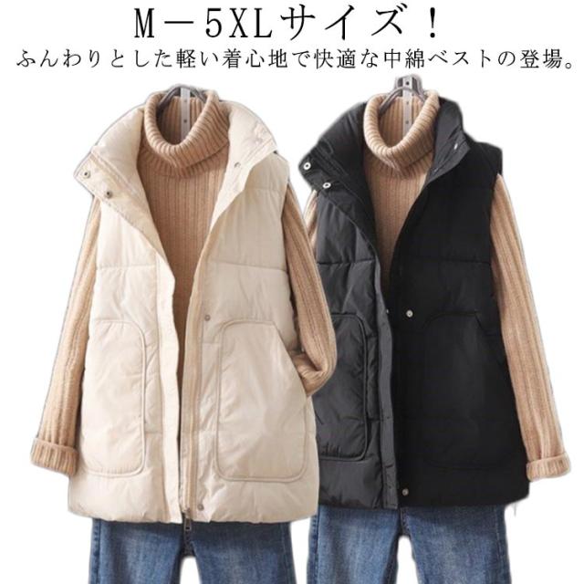 M−5XLサイズ!ベストジャケット レディース スタンドカラー ベスト 中綿 ジャケット 袖なし 立ち襟ジャケット ブルゾン ポケット付き 大きサイズ ゆったり 春 秋 冬