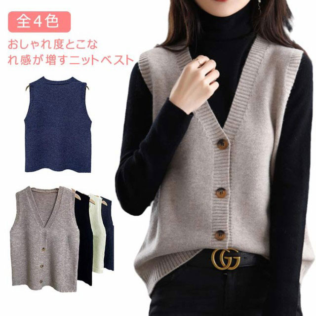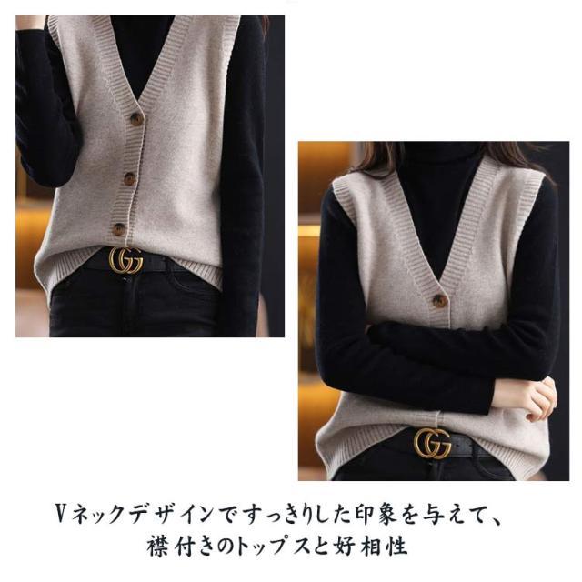 ベスト ニットベスト レディース 前開きベスト ショート丈 Vネック ニット ベスト 重ね 秋冬