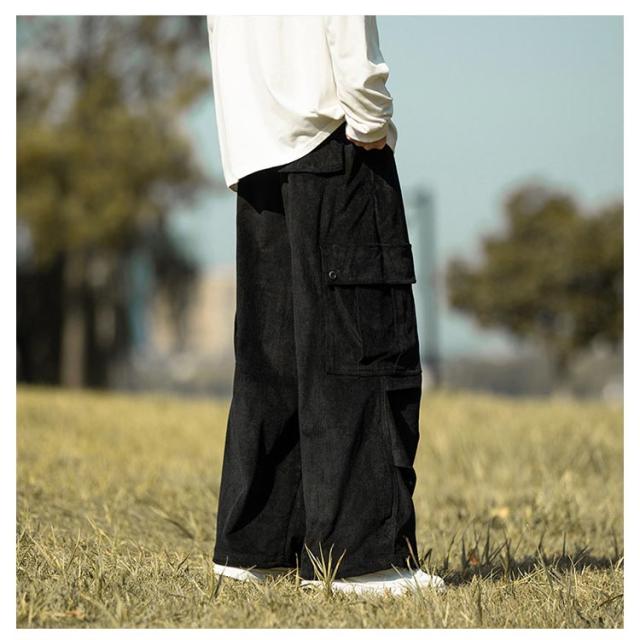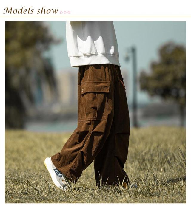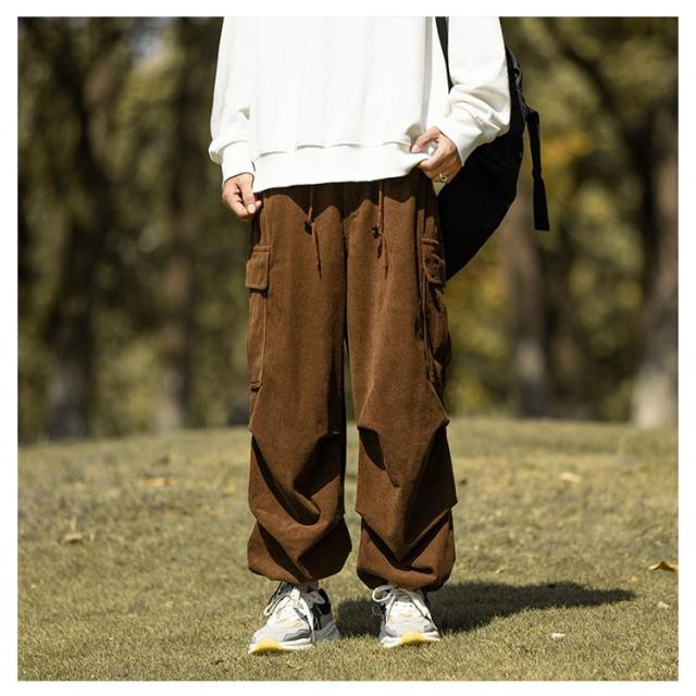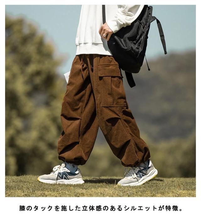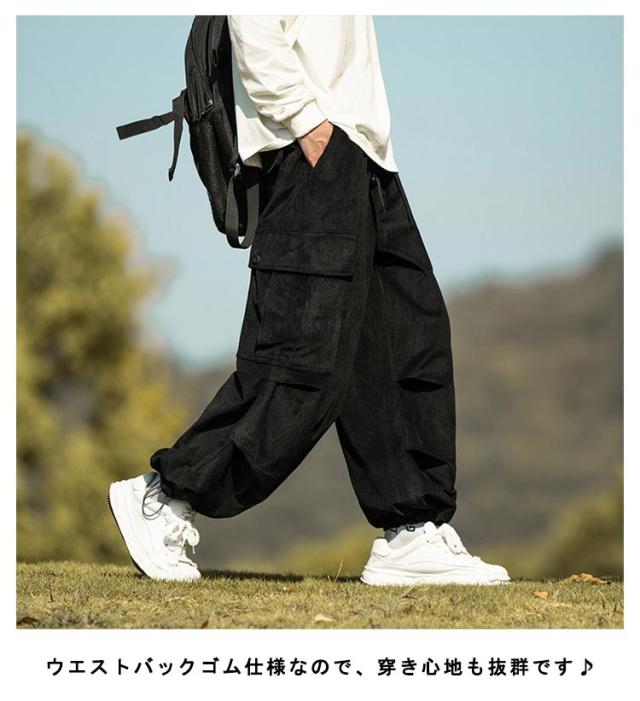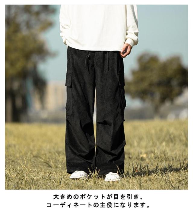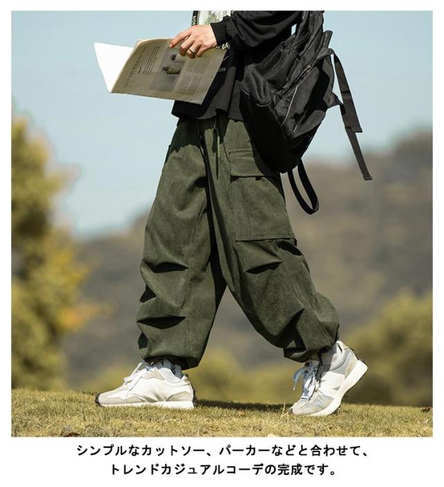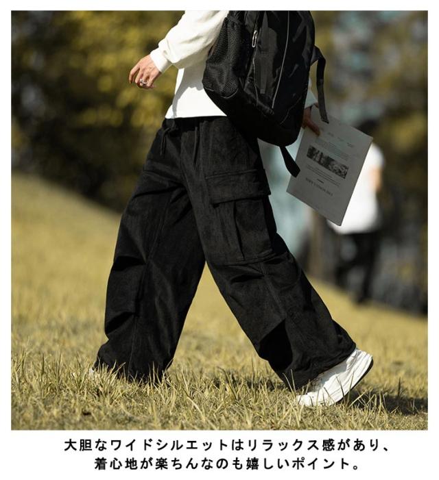 コーデュロイ カーゴパンツ メンズ ミリタリーパンツ 送料無料 韓国 ワイドパンツ ウエストゴム ワークパンツ コーデュロイパンツ イージーパンツ 大きめ 大きいサイズ カジュアルパンツ ストリート系 韓国 ファッション 秋服 秋 秋冬